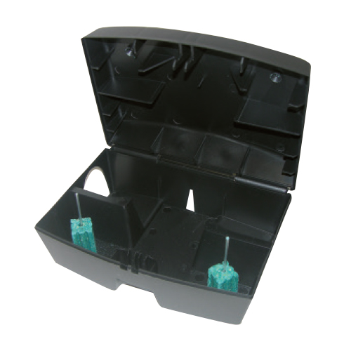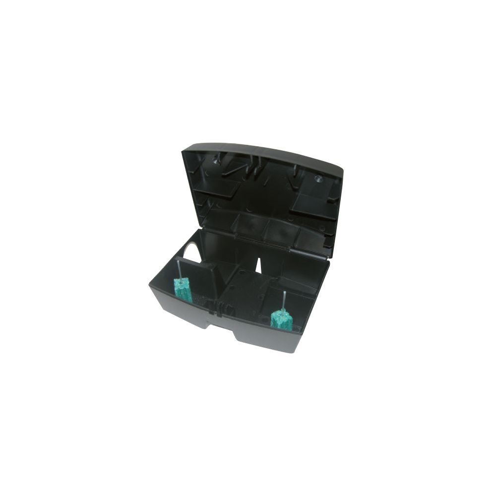 Caja portacebos de seguridad para ratas compacta y altamente resistente. Una alternativa económica a las cajas portacebos de mayor tamaño. Tapa desmontable para facilitar la inspección y mantenimiento de registros. La tapa presenta una ranura de inspección opcional que puede recortarse de la tapa por la zona marcada con un cuchillo afilado. Esta ranura está principalmente diseñada para cuando se utilizan cepos dentro de la caja portacebos. Permite una rápida y fácil inspección sin necesidad de abrir la tapa. Se pueden utilizar bridas de color (no incluidas) o cables atados al cepo para poder identificar el estado del cepo desde la distancia. Cierre de seguridad AF®. Puede utilizarse con un cepo, un bebedero o bloques rodenticidas en posición vertical u horizontal. Diseñada específicamente para el Ratonex Líquido de 250ml autodosificador. Bandejas de plástico opcionales.