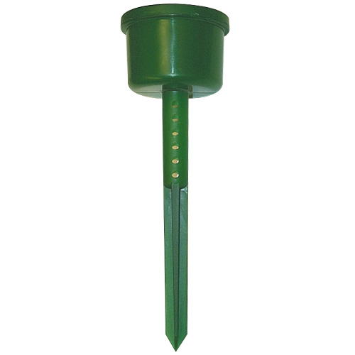 Caja portacebos para el control de hormigas. Se compone de un recipiente que tiene una tapa de seguridad y debajo un pincho para poder clavarla en la tierra. Este pincho tiene agujeros por donde pueden entrar las hormigas. Fabricada de polipropileno, protege el cebo del sol y la lluvia. Es de fácil colocación y de color verde para camuflarla mejor.