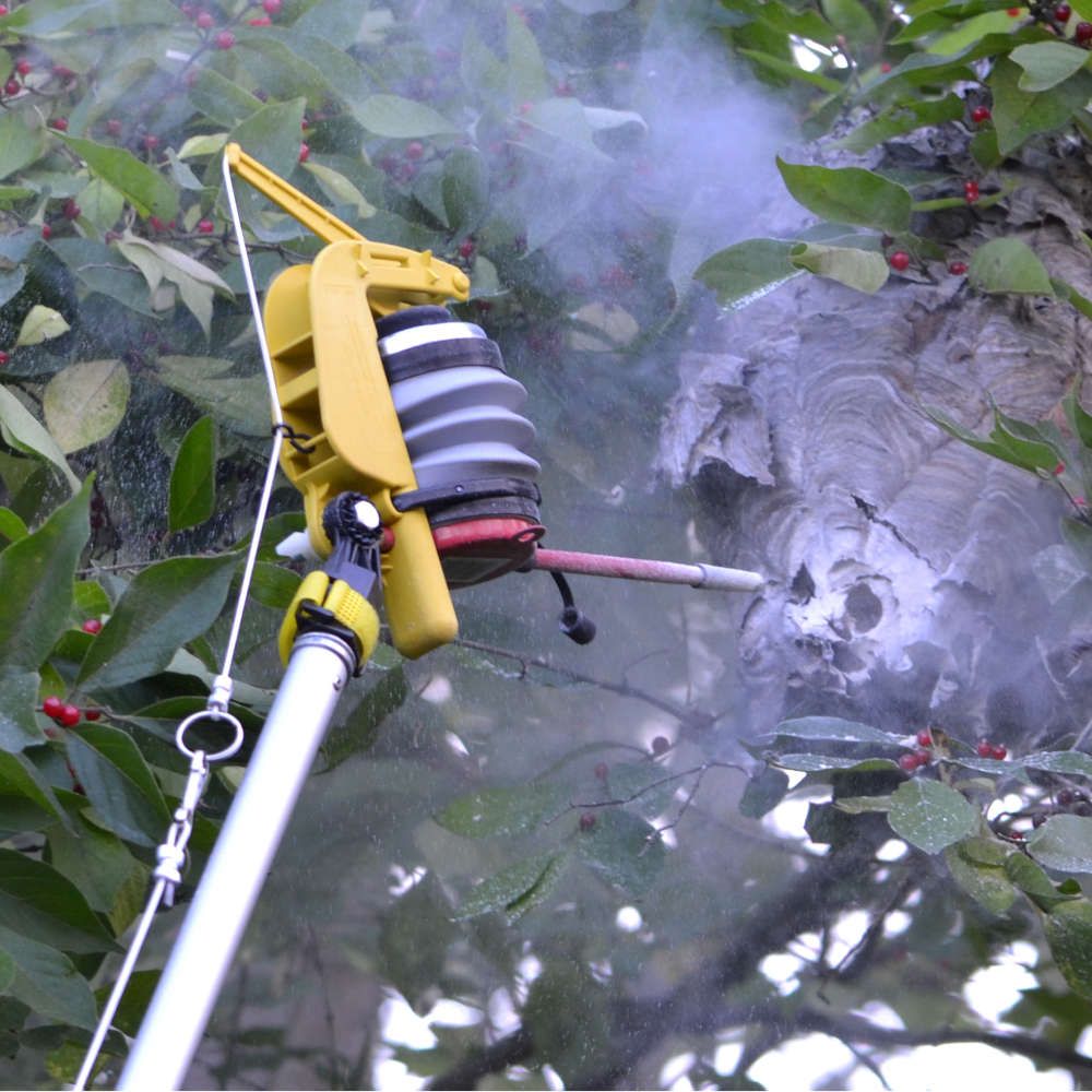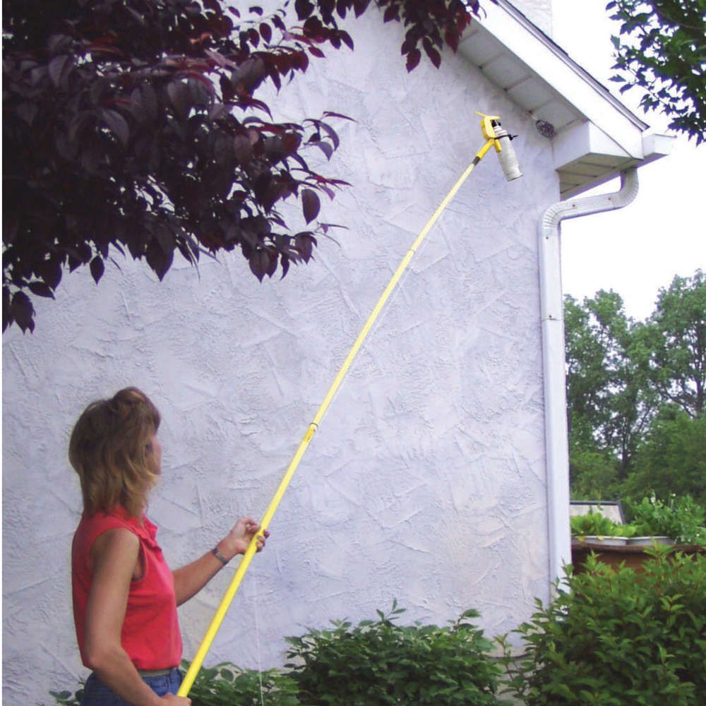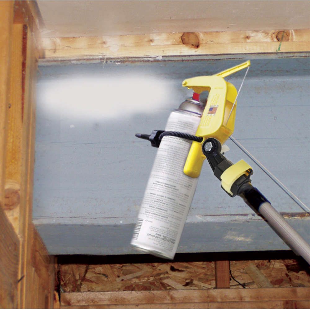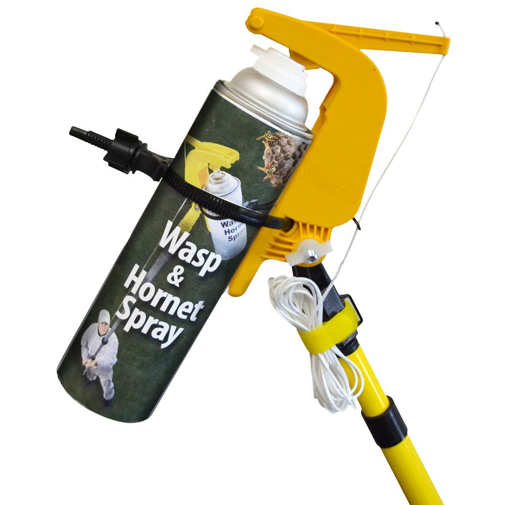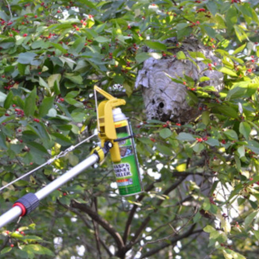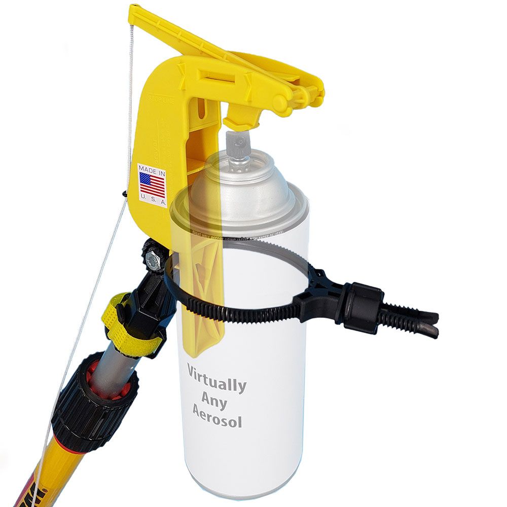 El aplicador Gotcha™ Pro permite acoplar y accionar a distancia cualquier tubo aerosol estándar desde lo alto de un palo extensible. Para trabajos en altura o de difícil acceso sin la necesidad de utilizar una escalera. Ideal para trabajos de avispas entre muchos otros.