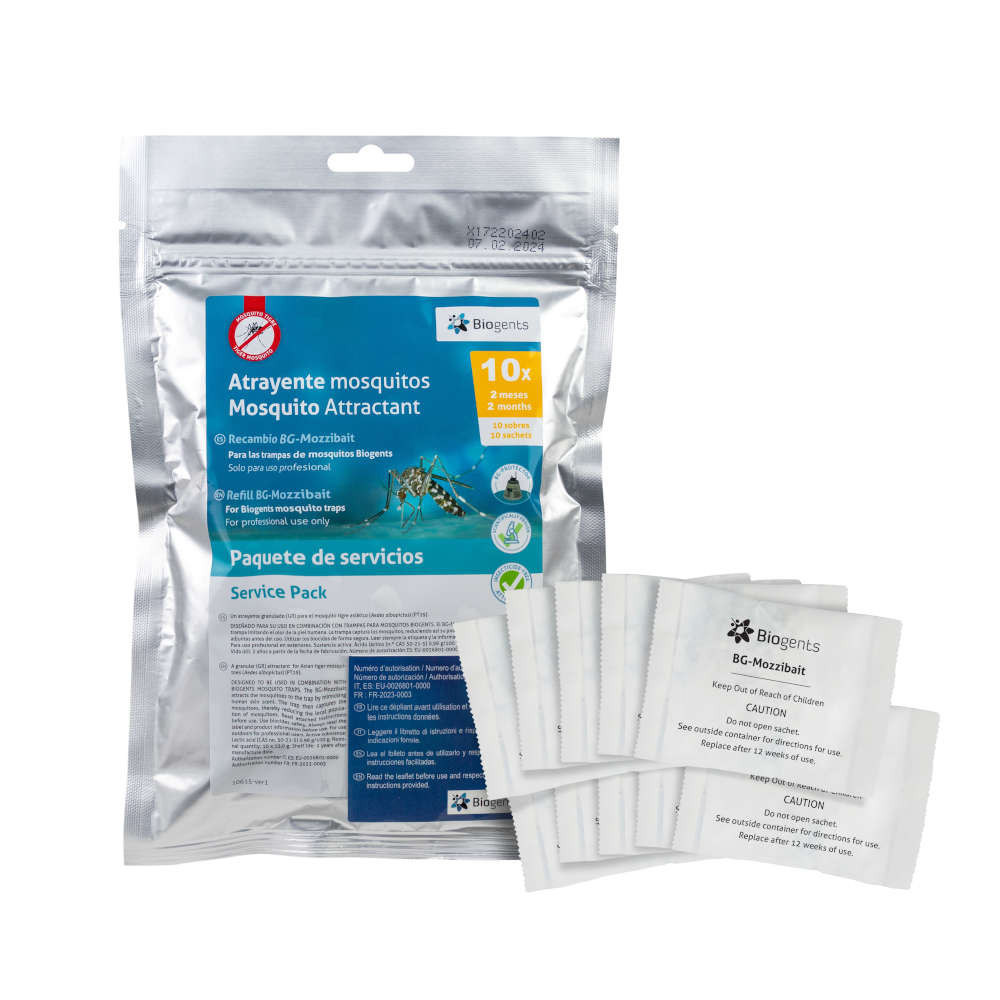 Atrayente para la captura de mosquitos tigre. Simula el olor de la piel humana para atraer a los mosquitos en combinación con las señales visuales de las trampas Biogents.