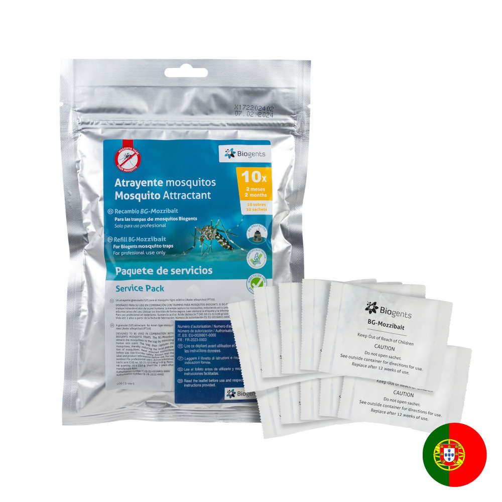 Atrativo para a captura de mosquitos tigres. Simula o odor da pele humana para atrair os mosquitos em combinação com as sinalizações visuais das armadilhas Biogents.