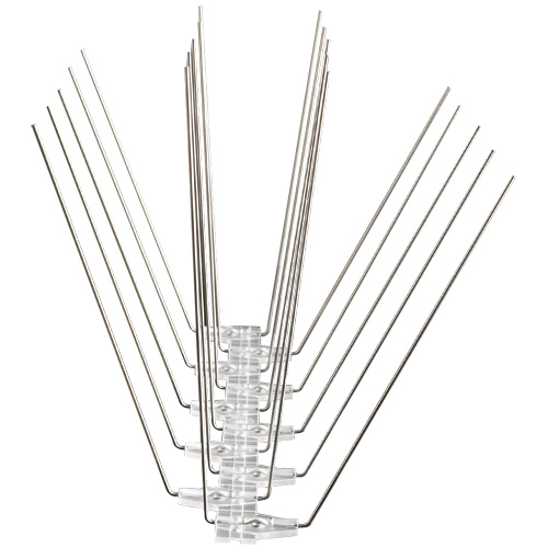Pincho especifico para gaviotas con una mayor altura de púas. Base de 45mm y en tiras de 33cm. Las puntas de las púas están separadas 175mm pudiendo proteger un área de hasta 275mm de anchura. La base es de policarbonato protegido contra la luz ultravioleta y los pinchos de acero inoxidable con la punta roma.