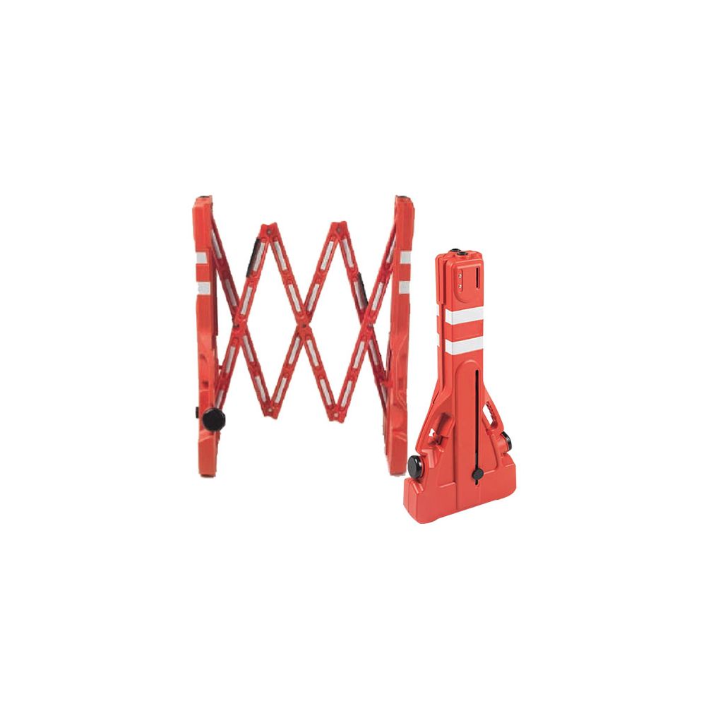 Barrera extensible de señalización y seguridad de alta visibilidad. Diseñada para ser fácil de transportar y utilizar a modo de advertencia. Fabricada de plástico endurecido de alta calidad. Compacta y ligera, se puede montar en segundos. Tiene una longitud máxima de 230cm y una altura de 107cm. Para mayor estabilidad, las bases laterales de soporte se pueden rellenar de agua o arena para incrementar el peso. Color intenso con bandas fosforescentes para máxima visibilidad.