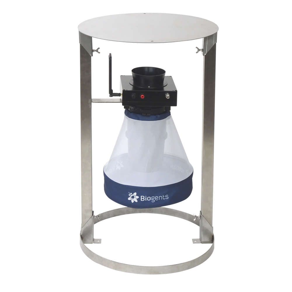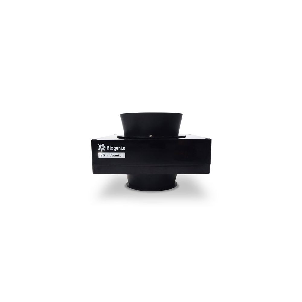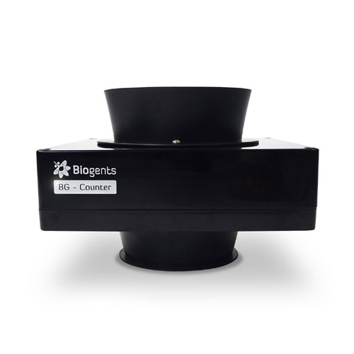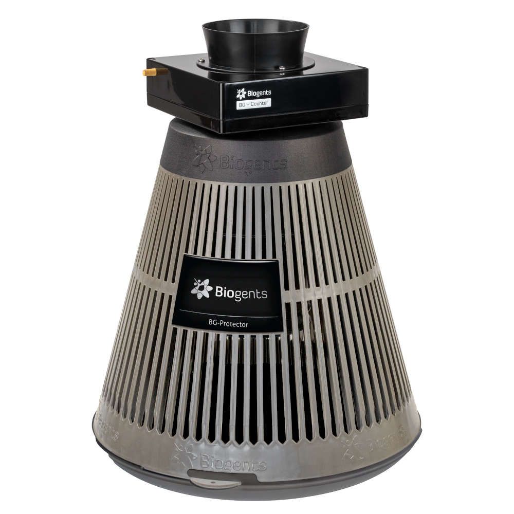 Dispositivo de monitoreo remoto para mosquitos para uso en exteriores. El contador diferencia automáticamente a los mosquitos de otros insectos que entran en la trampa, los cuenta y transmite de forma inalámbrica los resultados a un servidor en la nube. Para ser utilizado conjuntamente a la trampa de Biogents BG-Protector.