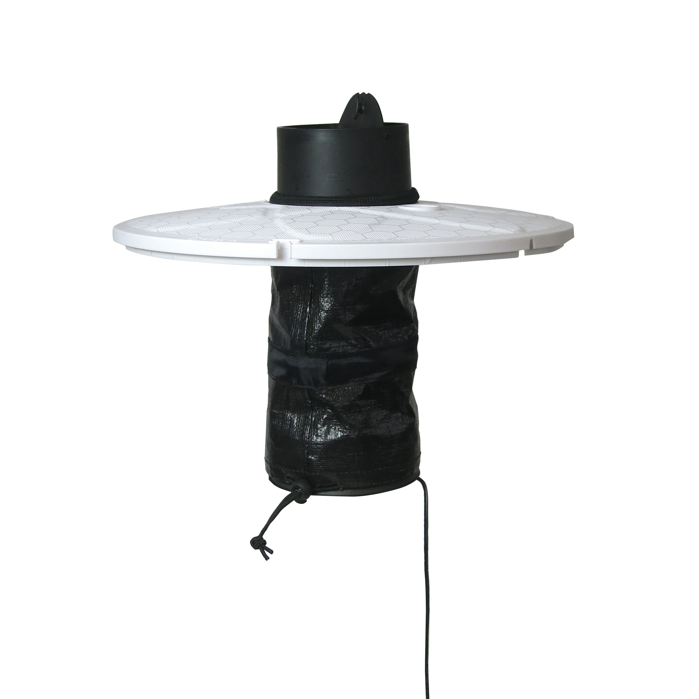 La trampa BG-Mount incluye la tapa con el túnel de entrada con sistema integrado de cerrado, el cilindro interno con el ventilador, dos bolsas de captura y un transformador con 8m de cable. No incluye el atrayente BG-Mozzibait (8 semanas de duración). No incluye ningún cuerpo de montaje.