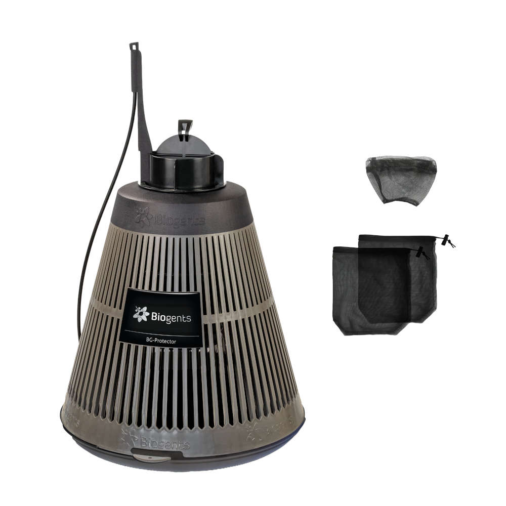 La trampa se utiliza con el atrayente BG-Mozzibait (no incluido) para mosquitos tigre, con una duración de 8 semanas. Éste simula el olor de la piel humana para atraerlos en combinación con las señales visuales de las trampas Biogents.
