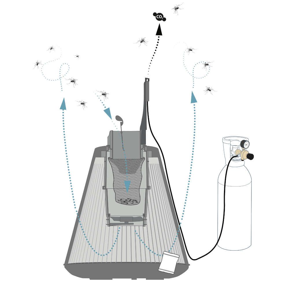 Funciona eficientemente para Aedes aegypti, Aedes polynesiensis y Aedes albopictus (mosquito tigre), vectores del Dengue, Chikungunya, Filariasis y la Fiebre amarilla. Para la captura de otras especies picadoras como Culex pipiens (mosquito común) y muchas otras se puede complementar la trampa con CO2, el cual, permite aumentar el número de capturas y la diversidad de especies capturadas (difusor CO2 incluido).
