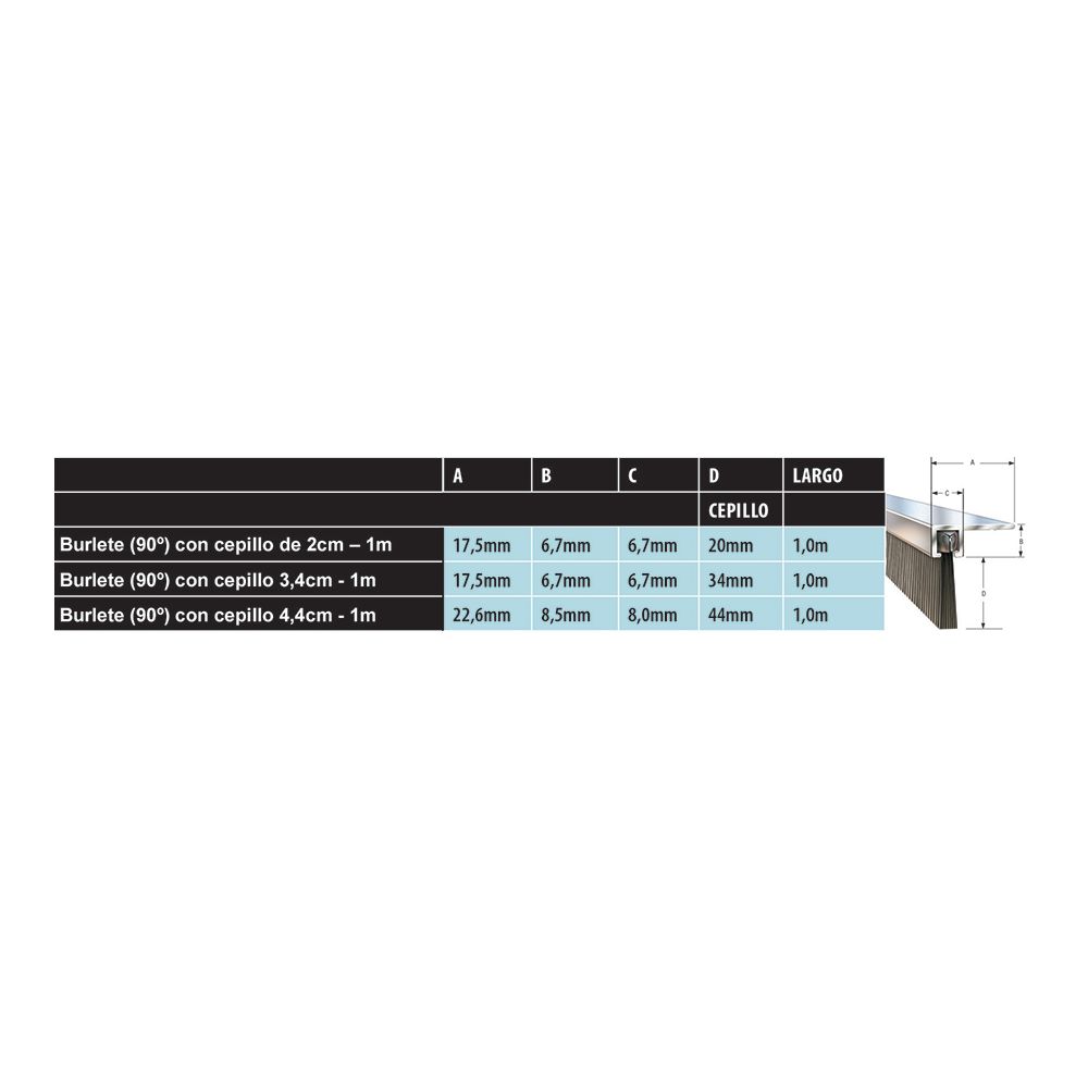 Para la exclusión de roedores e insectos. Previene su entrada en los edificios por debajo de las puertas. Los burletes son una herramienta de fácil instalación y muy eficaz. Presentados en una cómoda longitud de 1 metro, con perfil de aluminio y con distintas alturas de cepillo (2,0cm, 3,4cm y 4,4cm) según el hueco a cubrir. Se pueden cortar fácilmente con una sierra de metal manual.