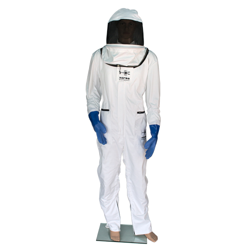 Mono completo de protección frente a las abejas. Capucha con rejilla de fibra de vidrio con visión de 180º. Alta comodidad y protección. Goma elástica en espalda para mayor ajuste y cierres de cremallera. Gomas elásticas en puños y guantes engomados. Bolsillos laterales. Tejido de doble capa de 240g/m2 (65% poliéster - 35% algodón).