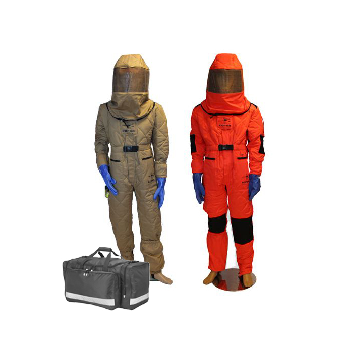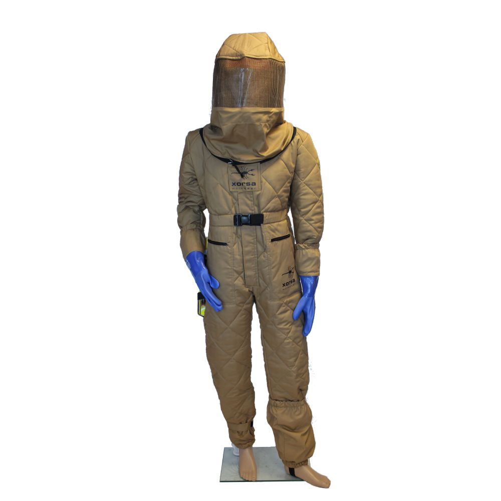 Buzos de seguridad certificados específicos para la retirada de nidos de avispa asiática (Vespa velutina). Esta avispa invasora se muestra más agresiva y con un aguijón que puede penetrar los trajes tradicionales de colmenero, haciendo imprescindible el uso de una vestimenta adecuada de mayor seguridad por parte de los operarios. Disponibles en dos colores y tejidos distintos. El modelo de color rojo está certificado en alta visibilidad y no lo ven las avispas, además incluye características adicionales.