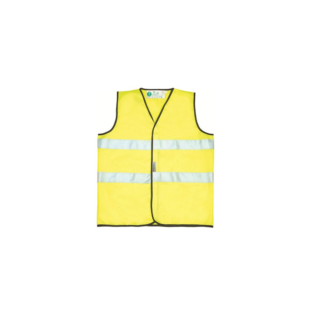 Chaleco de alta visibilidad fabricado en tejido de malla transpirable en color amarillo. Provisto de bandas retroreflectantes. Cierre de velcro. Especialmente pensado para poder ser visto a gran distancia. Homologado.