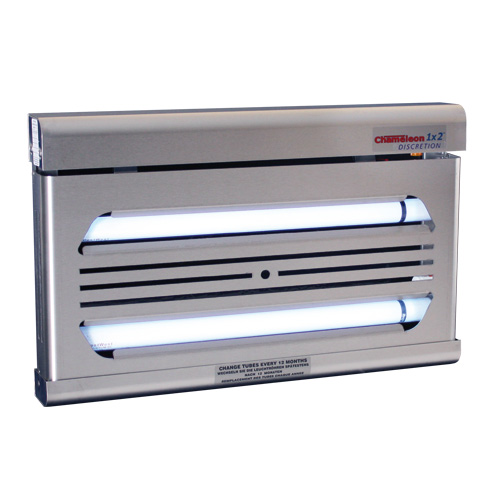 Aparato de luz ultravioleta muy discreto que deja la tabla adhesiva camuflada y que debido a su perfil extra fino puede ser instalado en cualquier pasillo o habitación sin que moleste. Este modelo es para instalar en la pared aunque hay la opción de un soporte de mesa. Disponible en blanco y en acero inoxidable.