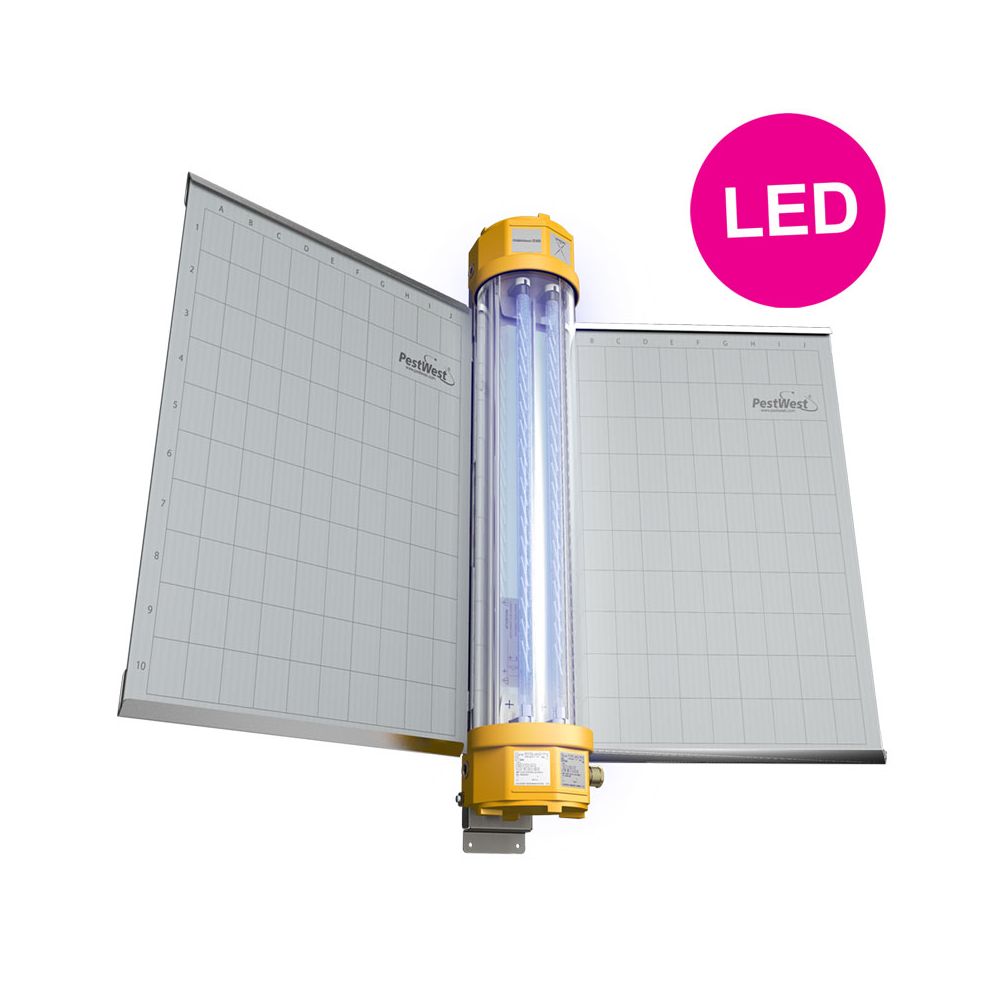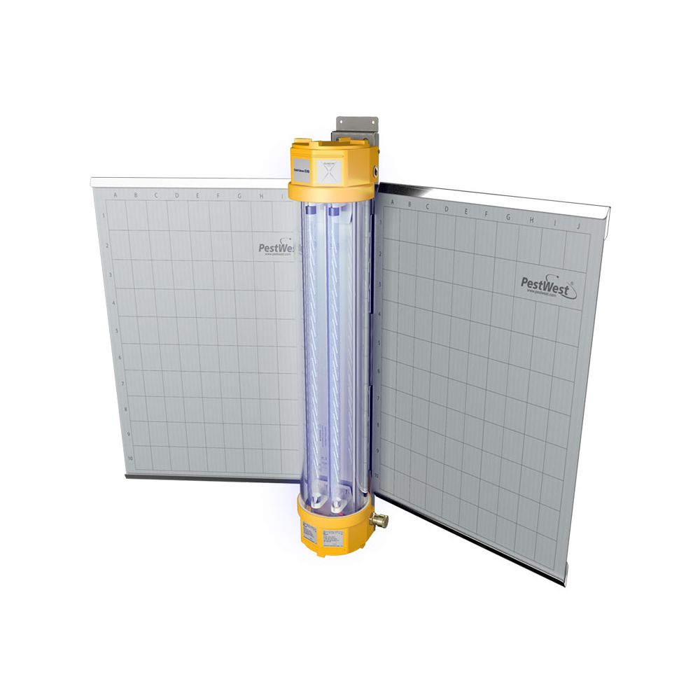 Aparato de luz ultravioleta de generación LED certificado para ser utilizado en zonas ATEX donde existe el riesgo de explosión por concentración de gas o polvo en la atmósfera, como en harineras, destilerías, industria farmacéutica y petroquímica… Equipado con dos tubos Quantum® X LED inastillables y con dos paneles laterales para las placas adhesivas.