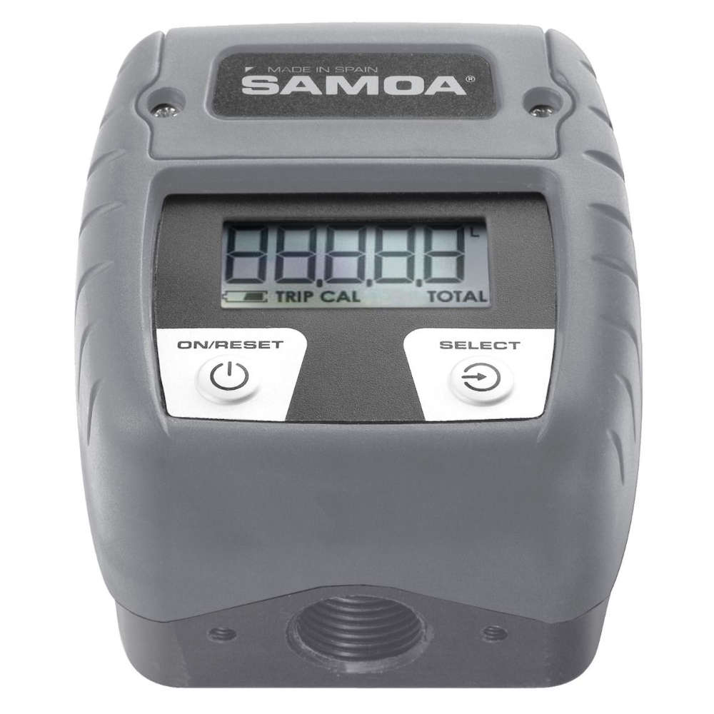 Contador digital de alta presión para medir el flujo de líquido inyectado. Con acoples rápidos de acero. Para caudales de 1 a 50l/min. Se instala entre la punta de la pistola de la bomba Mabi 8HP ECO y la boquilla inyectora. Presión máxima de trabajo de 30 atmósferas.