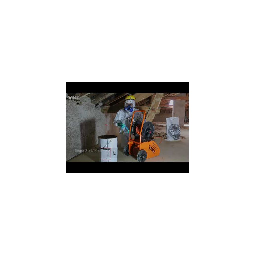Raspador ergonómico manual para decapar vigas de madera. Decapar antes de pulverizar permite a los biocidas protectores de madera difundir más fácilmente en la parte sana y protegerla contra termitas, carcomas y hongos.