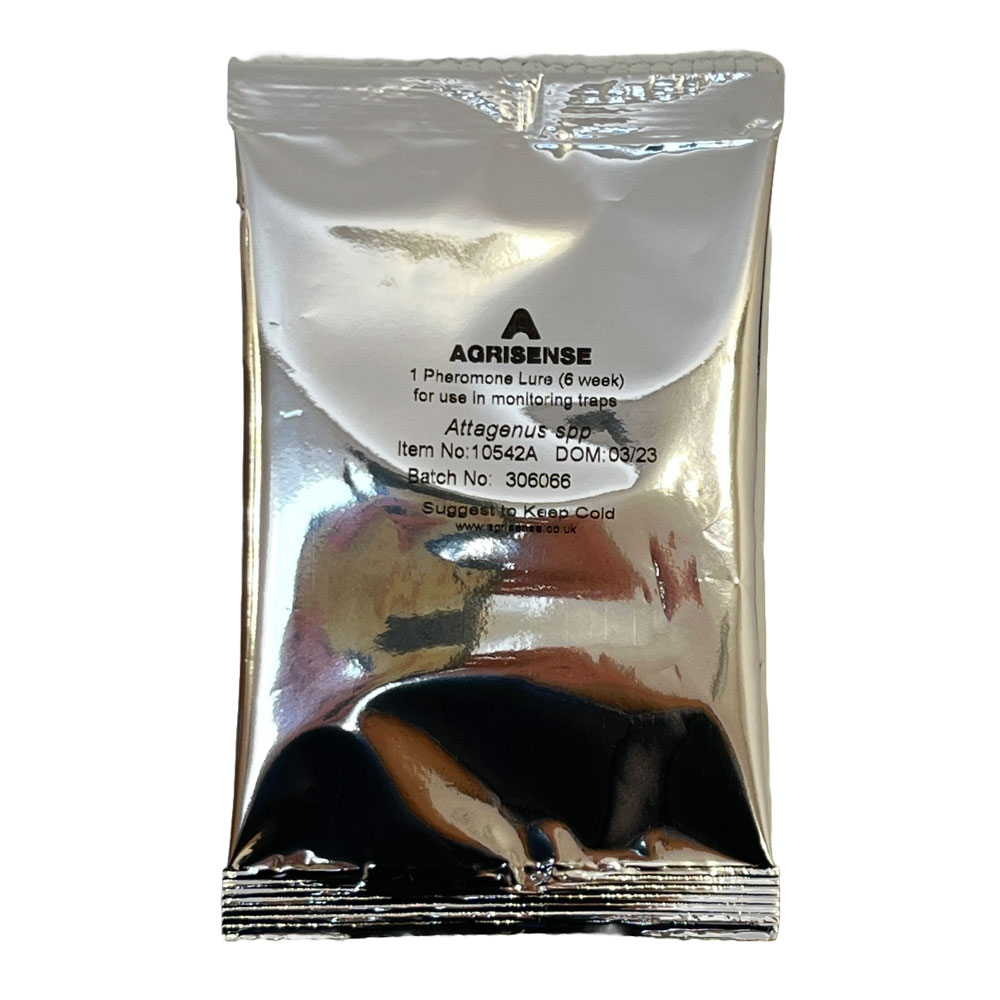 Para ser utilizados en trampas adhesivas para la monitorización del escarabajo de las alfombras (Attagenus spp.). El dispensador consta de cantidades minúsculas de feromona impregnada en un vial de polietileno de cesión controlada. La duración de la feromona es de 6 semanas.