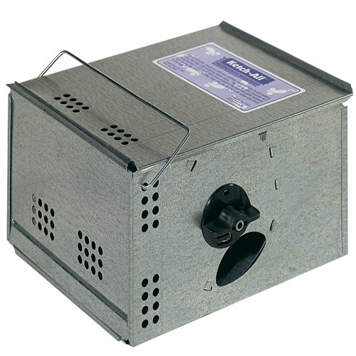Trampa metálica de captura múltiple para ratones. Dispone de un sistema rotatorio de acción mecánica que hace posible la captura repetida de ratones sin lesionarlos.