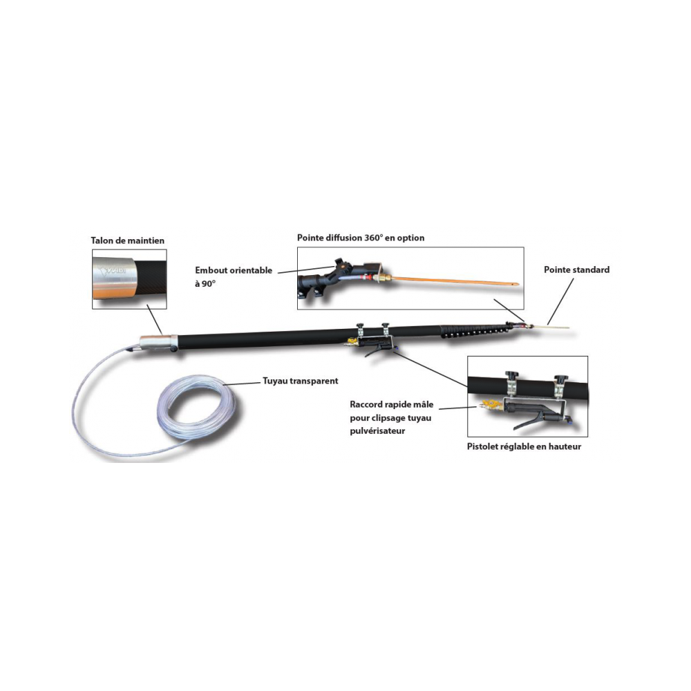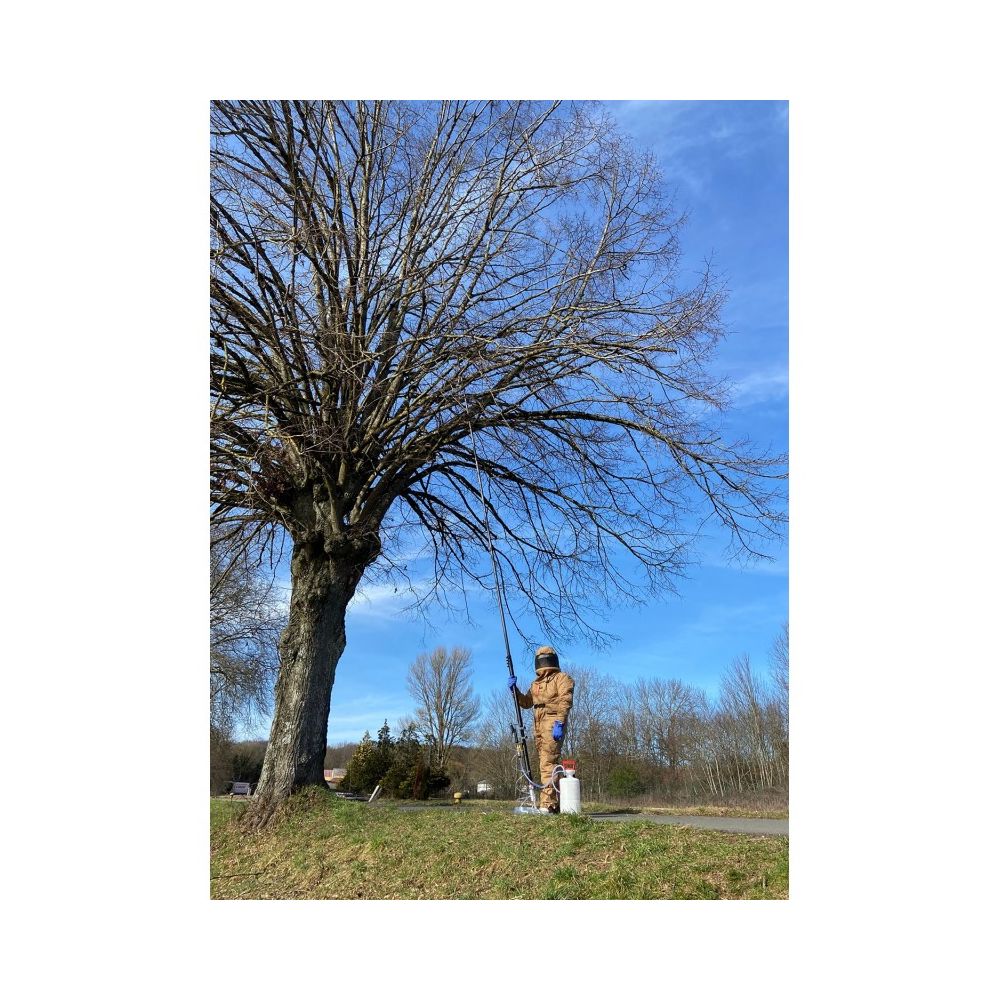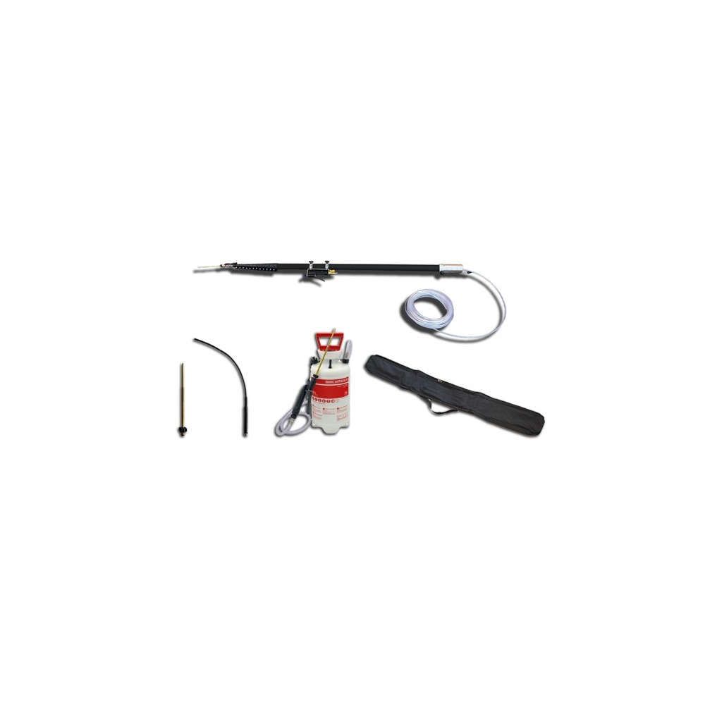 Lanza telescópico de hasta 15 metros de altura para la aplicación de polvos. Diseñada para el tratamiento de nidos de avispas como la avispa asiática (Vespa velutina) u otras plagas de difícil acceso en altura. Puede alcanzar los 15 metros de longitud (despliegue telescópico al 100%) para trabajar con total seguridad.