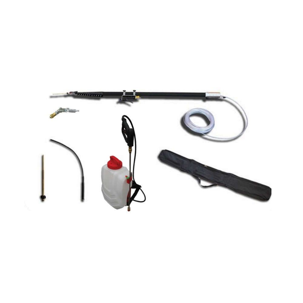 Lanza telescópico de hasta 15 metros de altura para la aplicación de productos líquidos (desde inyecciones a pulverizaciones de amplio espectro). Diseñada para el tratamiento de nidos de avispas como la avispa asiática (Vespa velutina) u otras plagas de difícil acceso en altura como la procesionaria del pino (Thaumetopoea pityocampa). Puede alcanzar los 15 metros de longitud (despliegue telescópico al 100%) para trabajar con total seguridad.