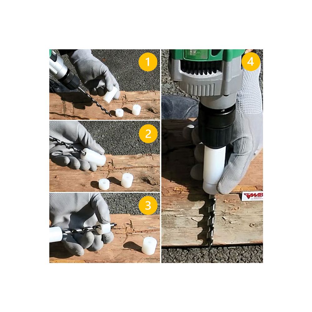 Kit tope para brocas de 9,5mm de diámetro. Permite una perforación fácil y rápida a la profundidad deseada. Ajuste de 15 a 90mm. El tope bloquea la progresión de la broca dentro de la madera. El kit no incluye brocas.