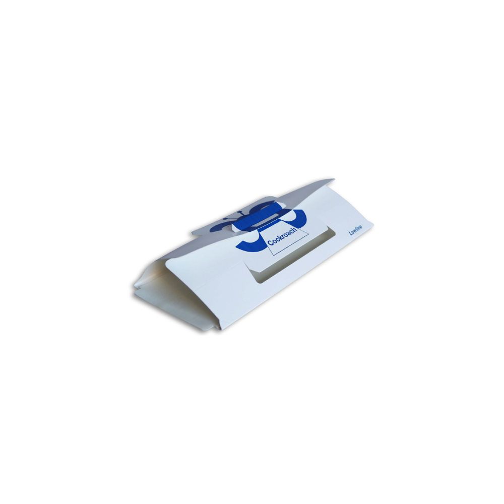 Trampa para cucarachas e insectos rastreros con el atrayente incorporado en el adhesivo. Especialmente diseñada para infestaciones grandes y para cucarachas de gran tamaño, como la cucaracha americana. Bajo perfil para facilitar la colocación y con entradas en ángulo para facilitar la entrada de las cucarachas. La duración de la trampa es de 6 a 8 semanas.
