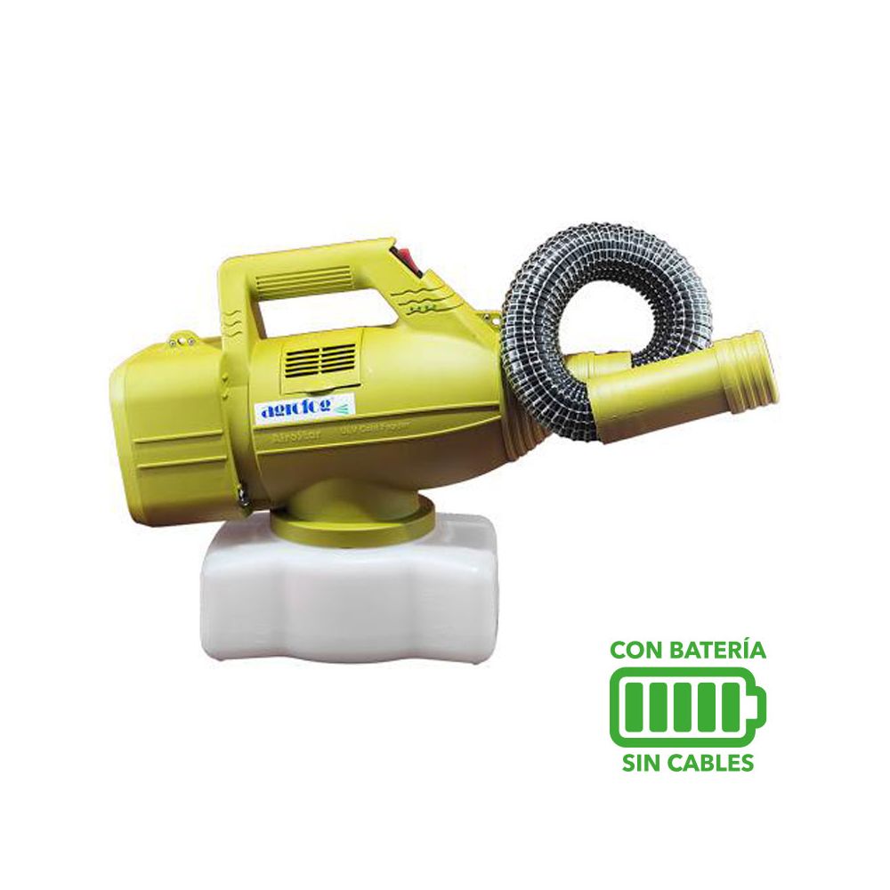 Nebulizador en frío ULV portátil sin cable mediante batería de litio. Con manguera extensible que permite dirigir la niebla y ganar en maniobrabilidad. Potente y duradero motor, el ventilador crea gotas muy pequeñas, en el rango de las 15-30μm, usando una boquilla de corte de aire vertical. Las finas gotas permanecen en el aire durante un período prolongado de tiempo y se dispersan en un área extensa propulsadas por la potente salida de aire en la boquilla. Disponibles baterías de repuesto.