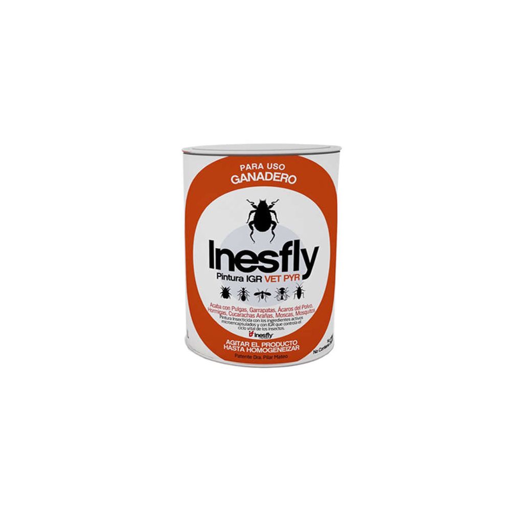 Pintura insecticida con un recubrimiento polimérico en base acuosa que lleva en suspensión microcápsulas poliméricas de insecticidas, acaricidas y reguladores del crecimiento de insectos. Esta tecnología innovadora a base de microcápsulas poliméricas permite una liberación lenta de los insecticidas y los IGR, otorgando al producto una alta persistencia y muy baja toxicidad, manteniendo la no interacción de las microcápsulas. Permite controlar todo tipo de artrópodos y plagas en ambientes ganaderos.