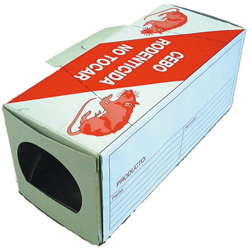 Caja portacebos de cartón plegable para ratas de fácil manejo y precio muy asequible. Hecha con cartón parafinado que le da resistencia a la humedad.