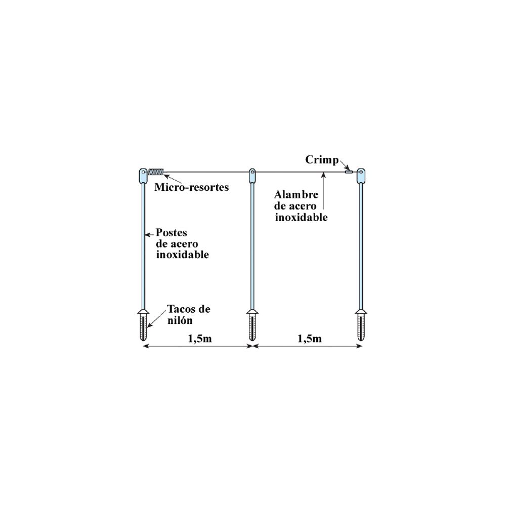 Postes de doble cabeza para la fijación del alambre para ser montados en vertical. Ideales para proteger la parte más exterior de las cornisas frente a las palomas. Acero inoxidable de grado 304.