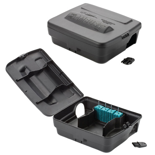 HOMOLOGACIÓN: La Protecta® EVO® Ambush® tiene la máxima homologación (Grupo 1) de la EPA (la Agencia de Protección del Medio Ambiente de los Estados Unidos). Significa que las cajas cumplen con las normativas de resistencia a la intemperie y a la intrusión por parte de niños y perros.