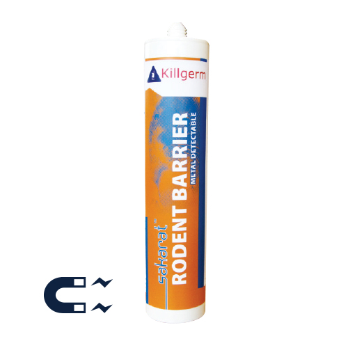 Pasta de fácil aplicación para sellar agujeros y grietas para prevenir la entrada de los roedores. En color azul. Incorpora tecnología de fibras de acero inoxidable en un cuerpo de silicona. Uso seguro en zonas alimentarias y efectivo a partir de los 20 minutos. Al secarse mantiene elasticidad por lo que no se agrieta y, una vez seca la capa superficial, se puede pintar. El producto se mantiene en consistencia de pasta en la ubicación de aplicación, es desagradable a los roedores y no lo traspasan. Resistente al agua y con una efectividad de 8-10 años.