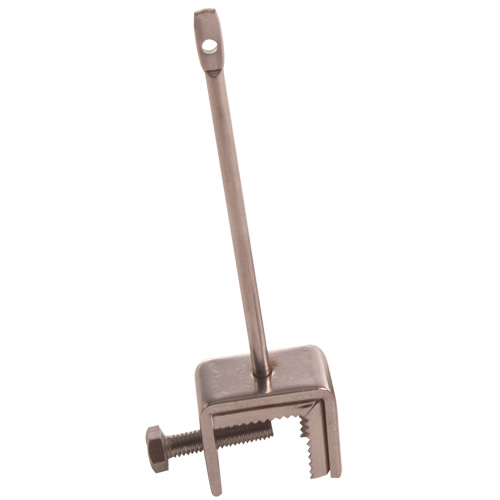 Un soporte para canalones con el poste soldado. Para la protección frente a las palomas. Acero inoxidable.