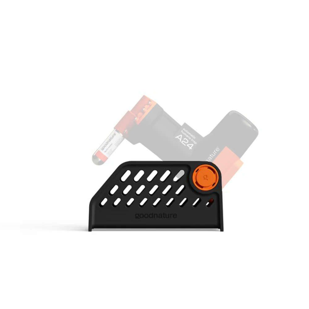 Soporte de montaje sobre superficie para la Goodnature A24 Smart Trap. La trampa también puede ser atornillada en superficies verticales para una sujeción firme (pared, estructuras de madera, árboles,…).