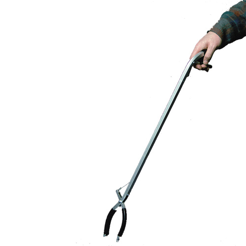 Pinza metálica de fácil manejo para atrapar gatos. Ayuda a evitar daños que pueden sufrir tanto la persona como el animal. Sirve asimismo para recolectar basura, recoger o posicionar cajas portacebos, retirar cadáveres de roedores y aves, etc.