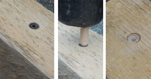 Tacos de madera de haya para esconder los tacos inyectores de 9,5mm Ø y embellecer la superficie.