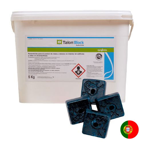 Bloco parafinado de brodifacume a 0,005%, para ambos, ratos e ratazanas. Esta formulação é ideal em condições molhadas e onde roedores comem pouco isco.