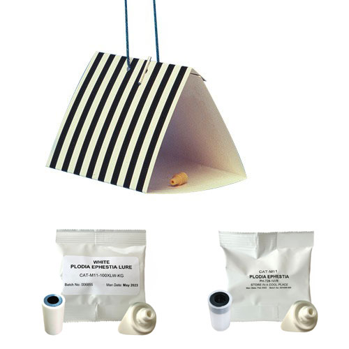 Dispensadores de feromonas para las palomillas de la harina Plodia interpunctella, Ephestia kuehniella, Ephestia cautella y Ephestia elutella. Los dispensadores para las palomillas de la harina constan de feromona impregnada en un vial de polietileno de cesión controlada.