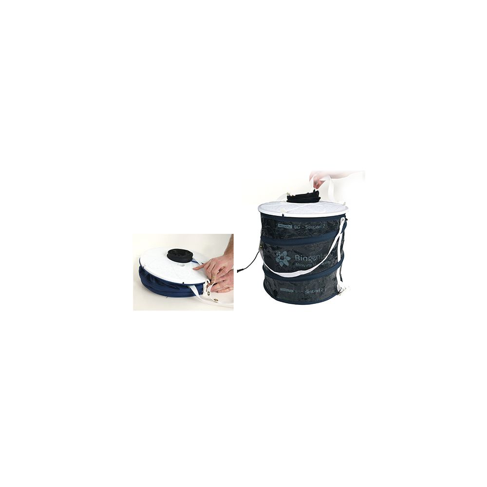 La trampa se utiliza con el atrayente BG-Mozzibait (no incluido) para mosquitos tigre, con una duración de 8 semanas. Éste simula el olor de la piel humana para atraerlos en combinación con las señales visuales de las trampas Biogents.