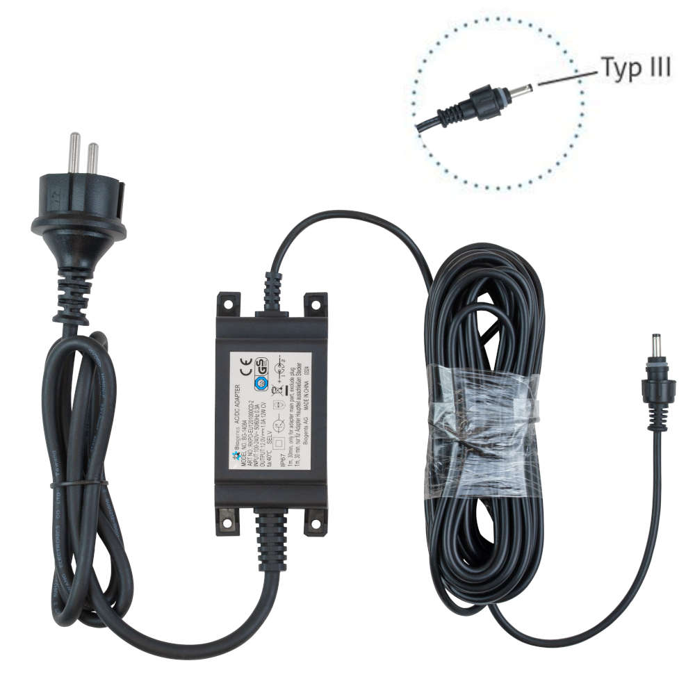 Transformador para la corriente eléctrica para la trampa de mosquitos BG-Protector (nuevo modelo) de Biogents. Con conector a prueba de agua y partículas IP67.