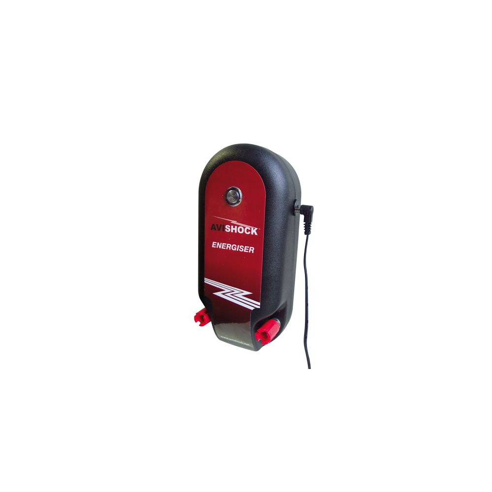 El transformador envía un pulso eléctrico a través del rail eléctrico cada 1,3 segundos, el pulso dura una fracción de segundo. El AVISHOCK™ es de alta tensión (hasta 5.000 Voltios c.c.) pero de muy poca intensidad (máximo 0,2 miliamperios). La unidad emite un pequeño sonido y un destello cada vez que produce un pulso eléctrico. El transformador se conectan a una toma convencional de corriente eléctrica. El Transformador Pequeño está diseñado para montajes de hasta 2000m de rail eléctrico.