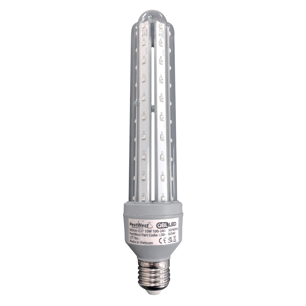 Menor consumo con un poder de atracción superior de insectos voladores. El tubo compacto de luz ultravioleta PestWest QBL LED tiene un patrón de distribución de luz amplio y una mayor eficiencia energética que los tubos fluorescentes convencionales. Sin mercurio y con una vida útil de 2 años.