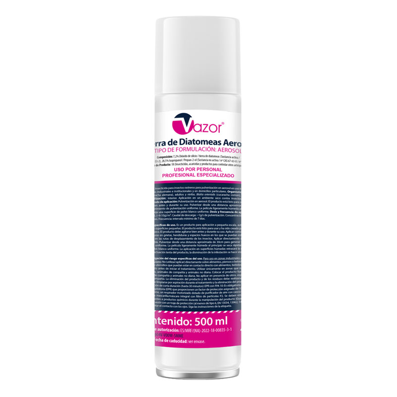 Polvo insecticida en aerosol a base de dióxido de silicio (tierra de diatomeas). Actúa en la capa exterior superficial de la cutícula del insecto, la capa de cera exterior protectora se daña mecánicamente y el insecto muere por deshidratación.
