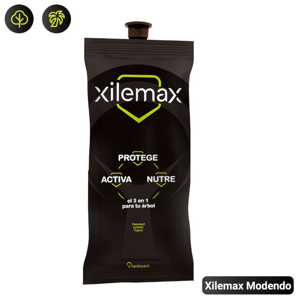 Endoterapia nutricional para árboles y palmeras. Xilemax Modendo es un dispositivo de endoterapia listo para su aplicación en árboles y palmeras. Formulado específicamente con sustancias fitofortificantes y nutritivas,está indicado tanto para el mantenimiento del arbolado ornamental como para la revitalización de árboles afectados por plagas, enfermedades, falta de nutrientes debido a suelos pobres o malas condiciones ambientales, entre otros. No apto para pinos o plantas resinosas.