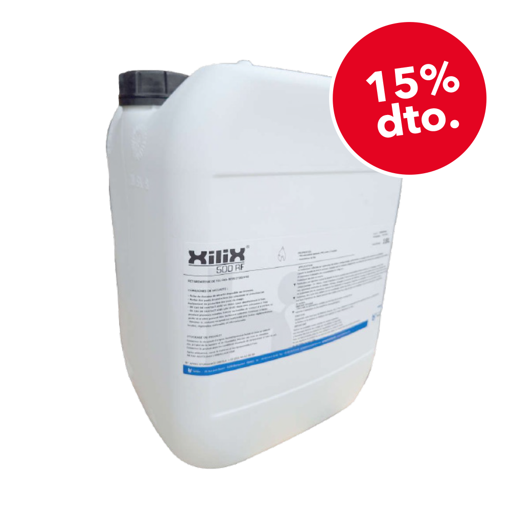 Tratamiento ignífugo para la madera en interiores. Emulsión acuosa lista para su uso. Retardante del fuego, reduce la inflamabilidad, la propagación de la llama, la liberación de calor y la formación de humo. Ideal para proyectos de renovación y/o mantenimiento. El efecto del tratamiento es inmediato y óptimo desde la etapa de fijación. La apariencia de la madera no se ve afectada por el tratamiento. Compatible con todo tipo de recubrimientos (para mantener la clasificación de incendios conferida a la madera por XILIX® 500 RF, el acabado debe tener la misma clasificación).