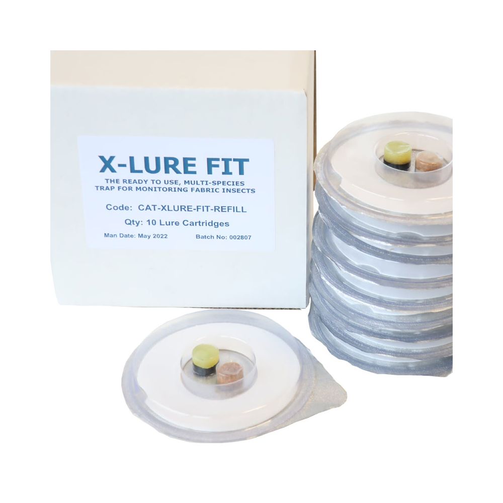 Recambios atrayente para la trampa Xlure FIT para insectos de los tejidos. Compuesto de una mescla de atrayentes especiales y de feromonas de insectos. Para el monitoreo de las polillas de la ropa, Tineola bisselliella y Tinea pellionella, y de los escarabajos de los museos o alfombras, Anthrenus verbasci y Attagenus unicolor.